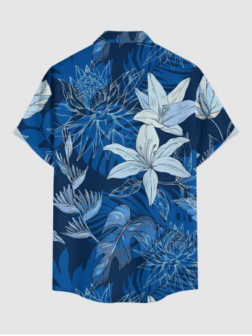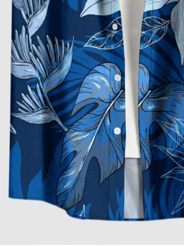 Plus Size Flowers Leaf Print Buttons Pocket Hawaii Shirt For Men - Blue - 3xl