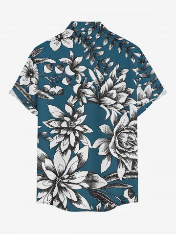 Plus Size Flowers Leaf Print Buttons Pocket Hawaii Shirt For Men - Peacock Blue - 6xl