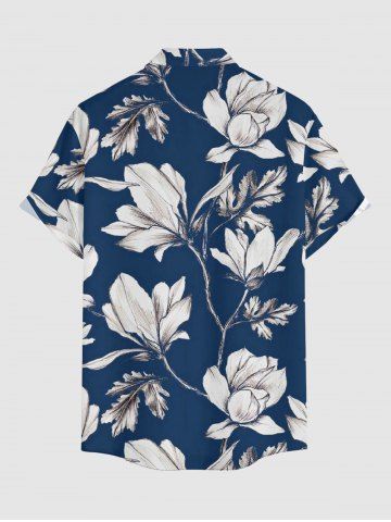 Plus Size Flowers Leaf Print Buttons Pocket Hawaii Shirt For Men - Cadetblue - 2xl