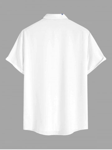 Plus Size Flowers Leaf Print Buttons Pocket Hawaii Shirt For Men - White - M