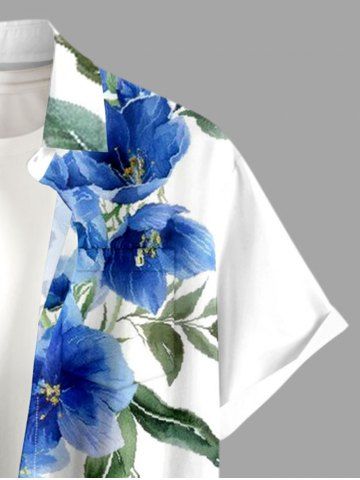 Plus Size Flowers Leaf Print Buttons Pocket Hawaii Shirt For Men - White - L