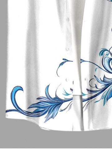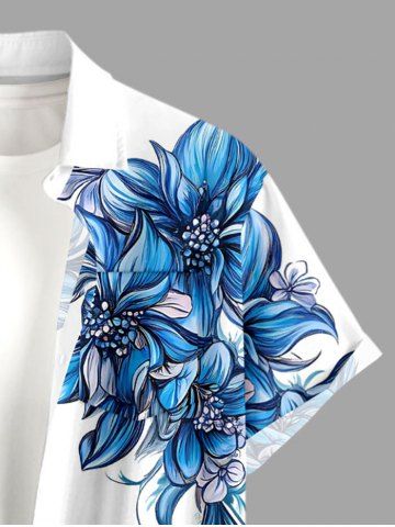 Plus Size Flowers Leaf Print Buttons Pocket Hawaii Shirt For Men - White - 3xl