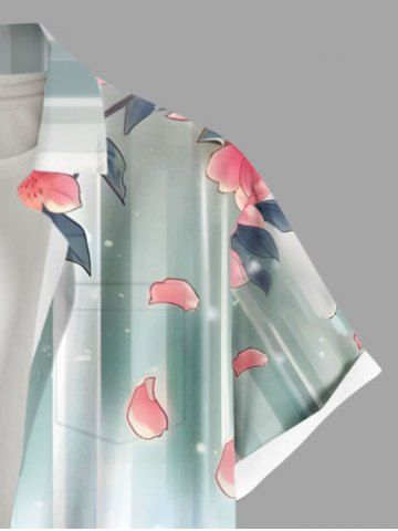 Plus Size Flowers Leaf Stripes Colorblock Ombre Print Buttons Pocket Hawaii Shirt For Men - White - M
