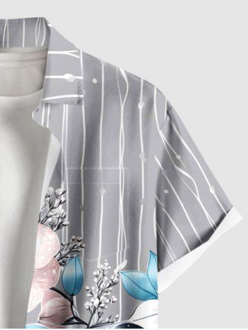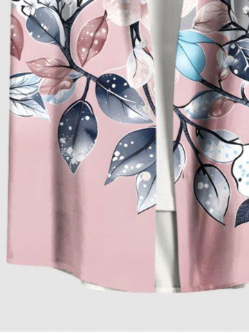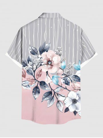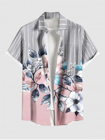 Plus Size Flowers Leaf Stripes Print Buttons Pocket Hawaii Shirt For Men - Light Pink - Xl