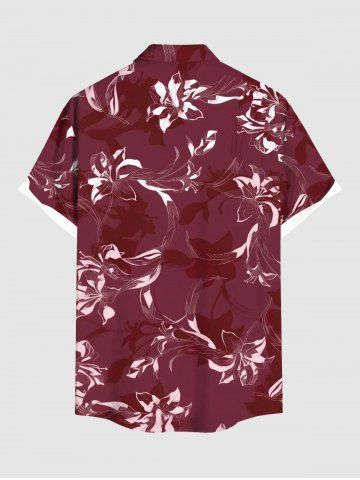 Plus Size Flowers Leaf Tropical Print Buttons Pocket Hawaii Shirt For Men - Red - Xl