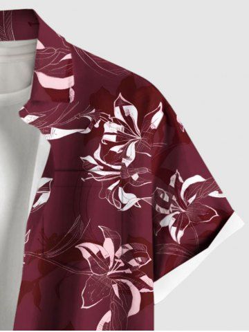 Plus Size Flowers Leaf Tropical Print Buttons Pocket Hawaii Shirt For Men - Red - 4xl