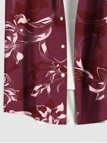 Plus Size Flowers Leaf Tropical Print Buttons Pocket Hawaii Shirt For Men - Red - 6xl