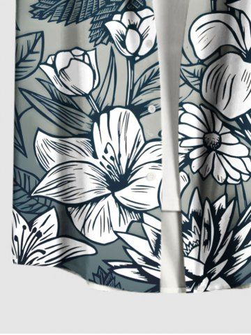 Plus Size Flowers Leaf Tropical Print Buttons Pocket Hawaii Shirt For Men - Gray - L