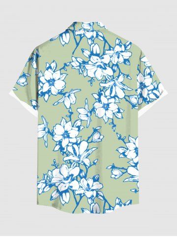 Plus Size Flowers Leaf Tropical Print Buttons Pocket Hawaii Shirt For Men - Green - 2xl