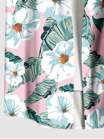 Plus Size Flowers Leaf Tropical Print Buttons Pocket Hawaii Shirt For Men - Light Pink - 4xl
