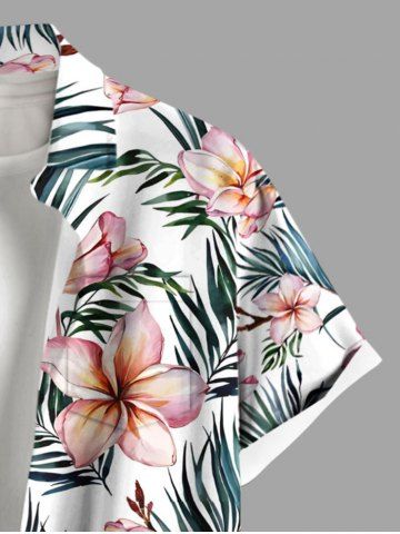 Plus Size Flowers Leaf Tropical Print Buttons Pocket Hawaii Shirt For Men - White - Xl