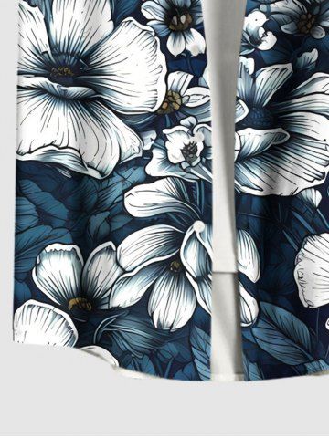 Plus Size Flowers Leaf Tropical Print Buttons Pocket Hawaii Shirt For Men - Deep Blue - M