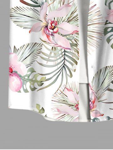 Plus Size Flowers Leaf Tropical Print Buttons Pocket Hawaii Shirt For Men - White - Xl