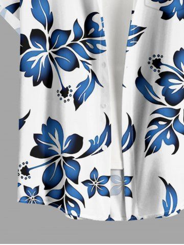 Plus Size Flowers Leaf Tropical Print Buttons Pocket Hawaii Shirt For Men - Sky Blue - 3xl