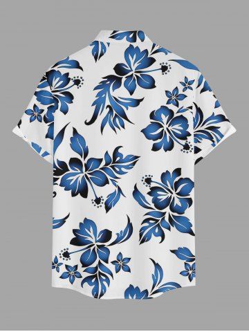 Plus Size Flowers Leaf Tropical Print Buttons Pocket Hawaii Shirt For Men - Sky Blue - 4xl