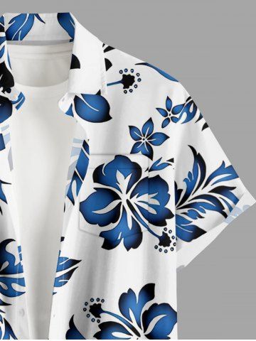 Plus Size Flowers Leaf Tropical Print Buttons Pocket Hawaii Shirt For Men - Sky Blue - 5xl