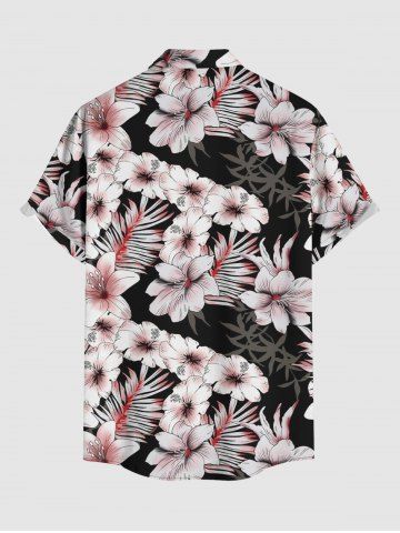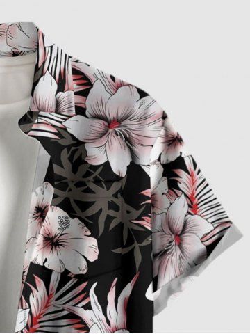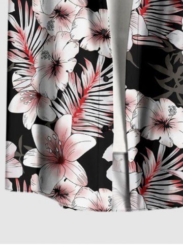 Plus Size Flowers Leaf Tropical Print Buttons Pocket Hawaii Shirt For Men - Black - Xl
