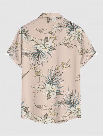 Plus Size Flowers Leaf Tropical Print Buttons Pocket Hawaii Shirt For Men - Rose - L