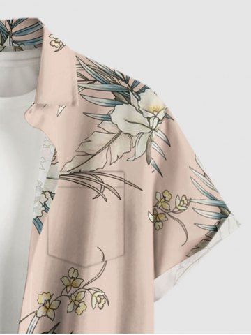 Plus Size Flowers Leaf Tropical Print Buttons Pocket Hawaii Shirt For Men - Rose - 2xl