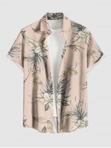 Plus Size Flowers Leaf Tropical Print Buttons Pocket Hawaii Shirt For Men - Rose - 4xl