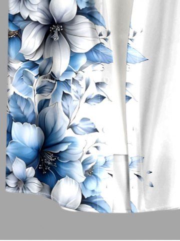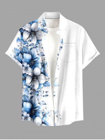 Plus Size Flowers Leaf Tropical Print Buttons Pocket Hawaii Shirt For Men - White - L