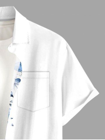 Plus Size Flowers Leaf Tropical Print Buttons Pocket Hawaii Shirt For Men - White - 5xl