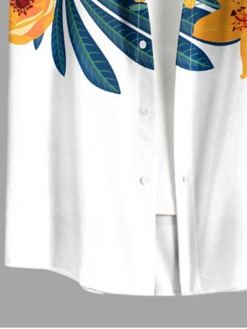 Plus Size Flowers Leaf Tropical Print Buttons Pocket Hawaii Shirt For Men - White - 4xl