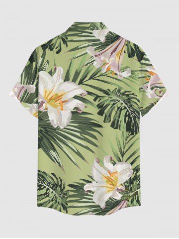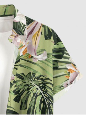 Plus Size Flowers Leaf Tropical Print Buttons Pocket Hawaii Shirt For Men - Light Green - 3xl