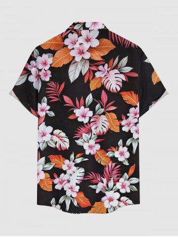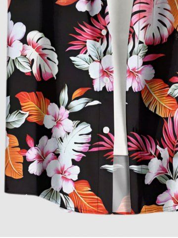 Plus Size Flowers Leaf Tropical Print Buttons Pocket Hawaii Shirt For Men - Pink - 2xl