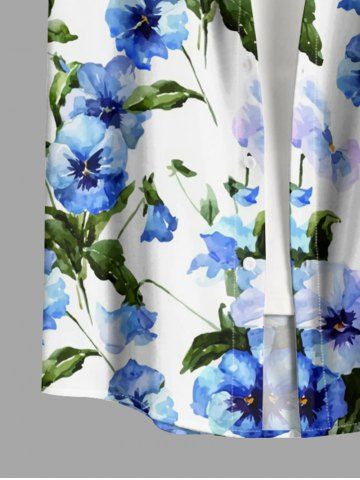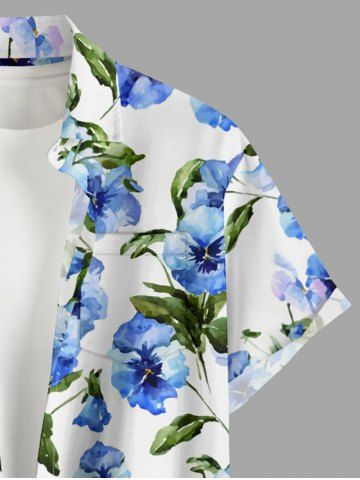 Plus Size Flowers Leaf Watercolor Print Buttons Pocket Hawaii Shirt For Men - Lake Blue - 4xl