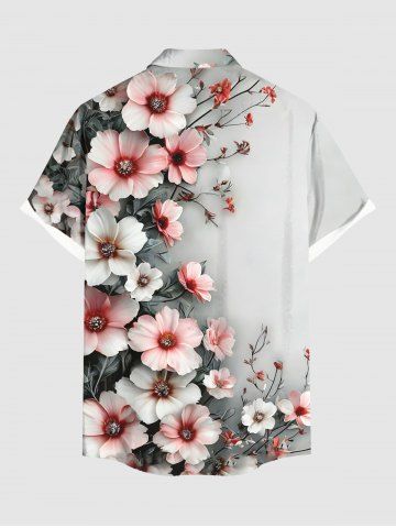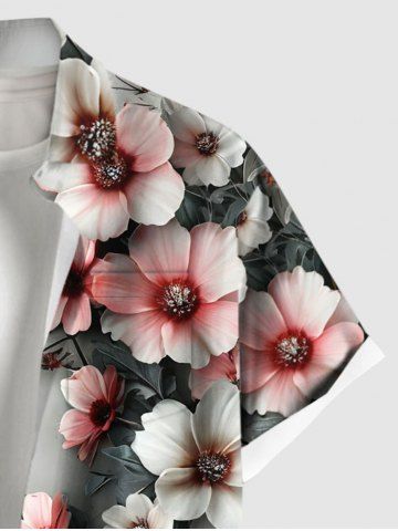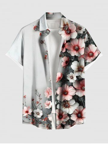 Plus Size Flowers Ombre Print Buttons Pocket Hawaii Shirt For Men - Light Gray - M