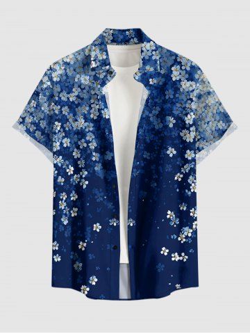 Plus Size Flowers Ombre Print Buttons Pocket Hawaii Shirt For Men - Deep Blue - 3xl