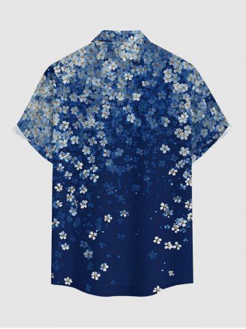 Plus Size Flowers Ombre Print Buttons Pocket Hawaii Shirt For Men - Deep Blue - 5xl