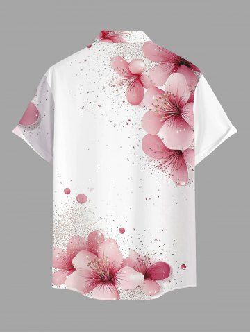 Plus Size Flowers Paint Splatter Print Buttons Pocket Hawaii Shirt For Men - White - S
