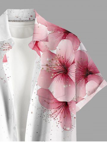 Plus Size Flowers Paint Splatter Print Buttons Pocket Hawaii Shirt For Men - White - M