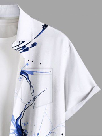 Plus Size Flowers Paint Splatter Printed Buttons Pocket Hawaii Shirt For Men - White - S