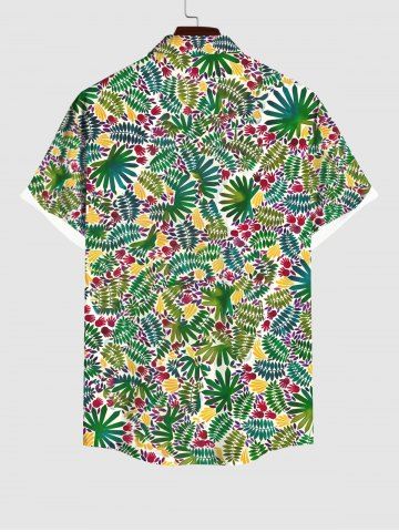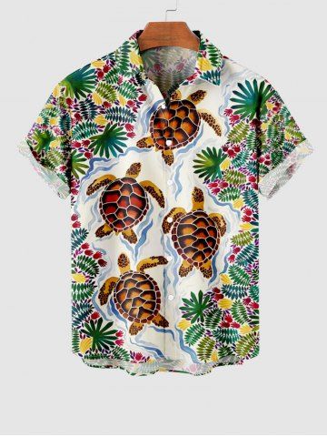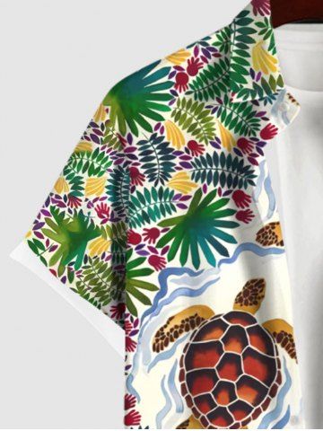 Plus Size Flowers Palm Leaf Turtle Print Buttons Pocket Hawaii Shirt For Men - Green - 4xl