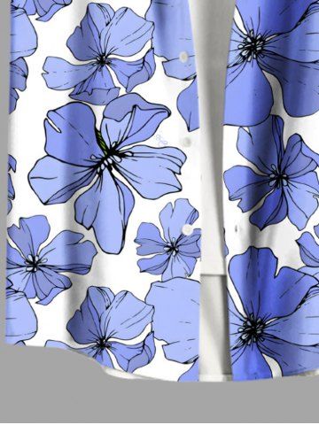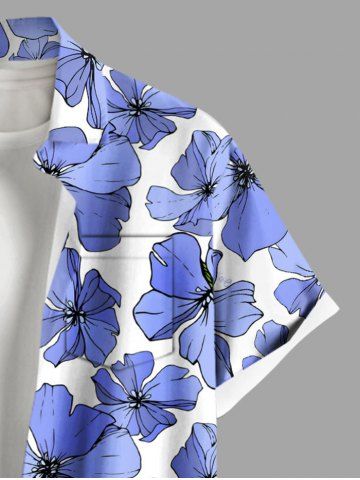 Plus Size Flowers Print Buttons Pocket Hawaii Shirt For Men - Purple - S
