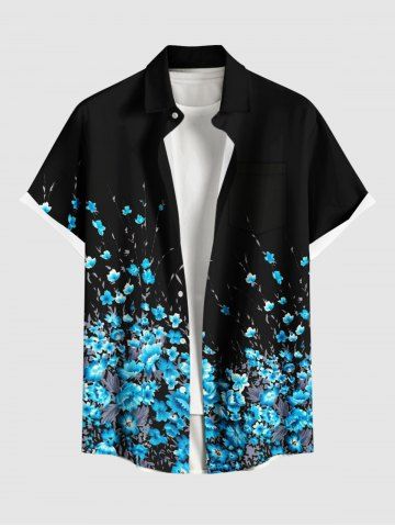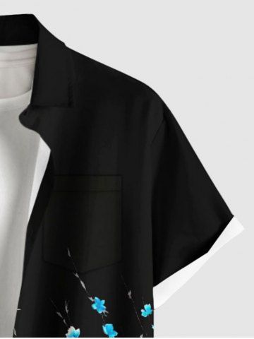 Plus Size Flowers Print Buttons Pocket Hawaii Shirt For Men - Black - M
