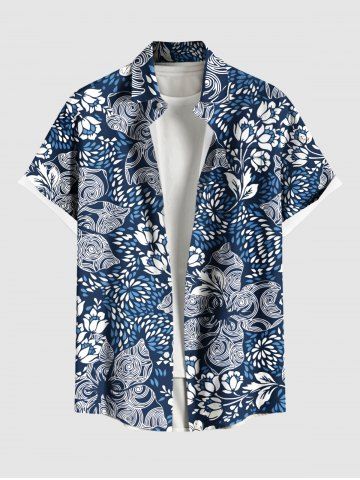 Plus Size Flowers Print Buttons Pocket Hawaii Shirt For Men - Navy Blue - S