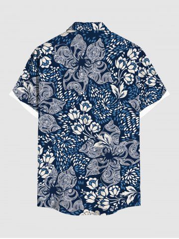 Plus Size Flowers Print Buttons Pocket Hawaii Shirt For Men - Navy Blue - Xl