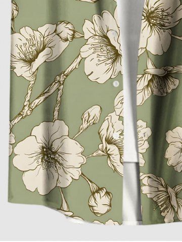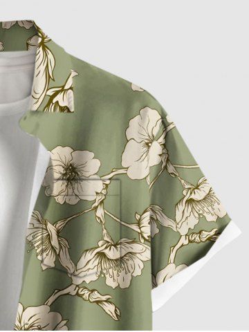 Plus Size Flowers Print Buttons Pocket Hawaii Shirt For Men - Green - S