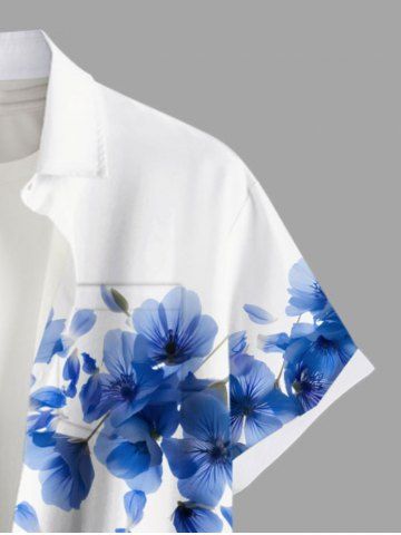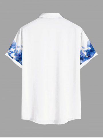 Plus Size Flowers Print Buttons Pocket Hawaii Shirt For Men - White - M
