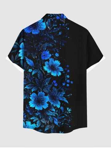 Plus Size Flowers Print Buttons Pocket Hawaii Shirt For Men - Black - 5xl