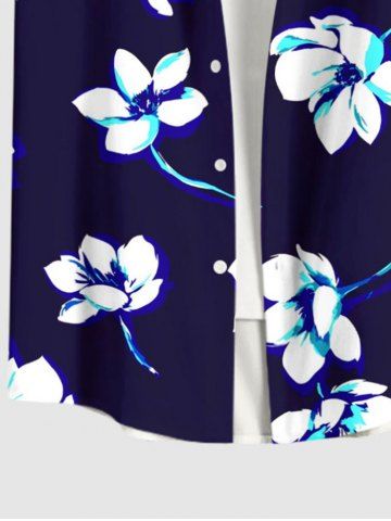 Plus Size Flowers Print Buttons Pocket Hawaii Shirt For Men - Navy Blue - L