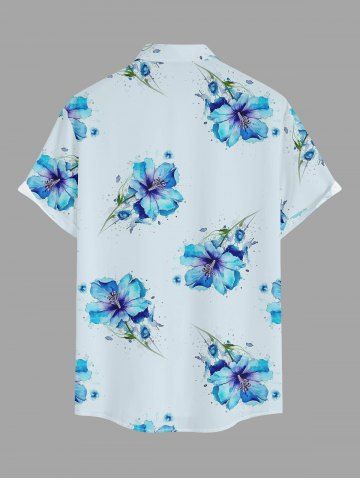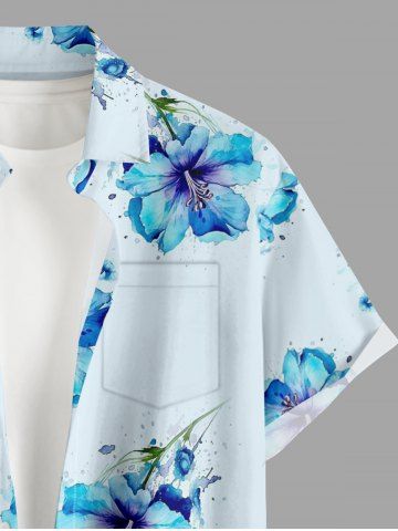 Plus Size Flowers Print Buttons Pocket Hawaii Shirt For Men - Light Blue - 6xl