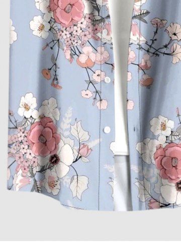 Plus Size Flowers Print Buttons Pocket Hawaii Shirt For Men - Light Purple - 4xl