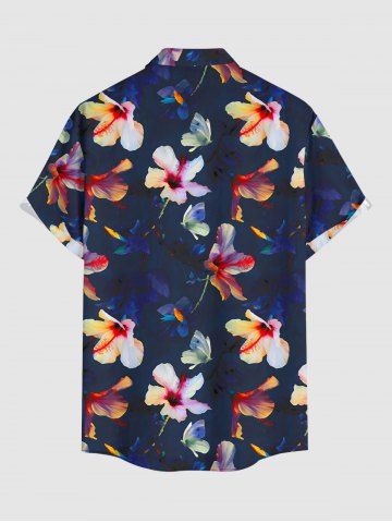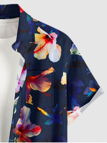 Plus Size Flowers Print Buttons Pocket Hawaii Shirt For Men - Deep Blue - 5xl