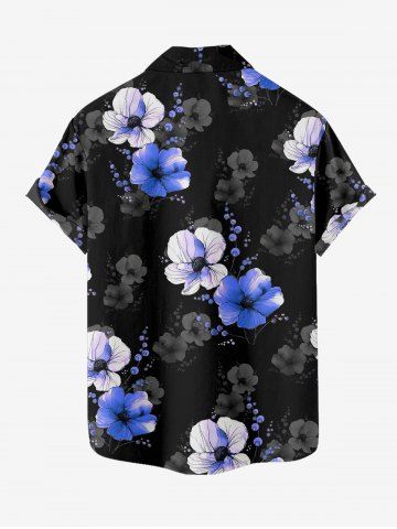 Plus Size Flowers Print Buttons Pocket Hawaii Shirt For Men - Black - Xl