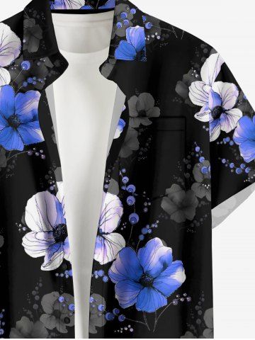 Plus Size Flowers Print Buttons Pocket Hawaii Shirt For Men - Black - 6xl